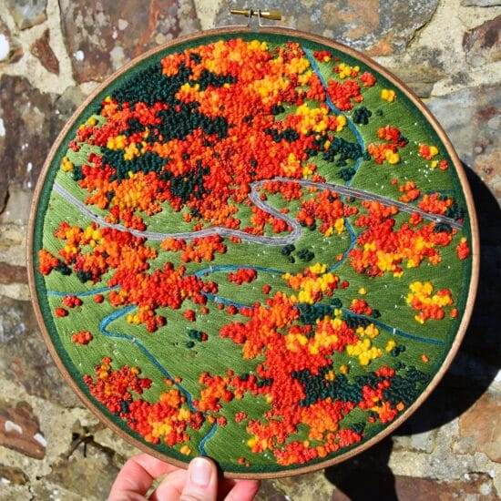 I am Victoria Rose Richards; I’m 25 and a biology graduate and embroidery artist from South West Devon, UK. After going through a lot of low patches in recent years, I figured a big contributor to them was boredom and decided to get a new hobby; I saw some embroidered landscapes online, got out my grandmother’s old tin and pulled out some greens and blues to have my first try… and then I never stopped! I now create handmade art as my full time profession and it brings me great happiness and peace.